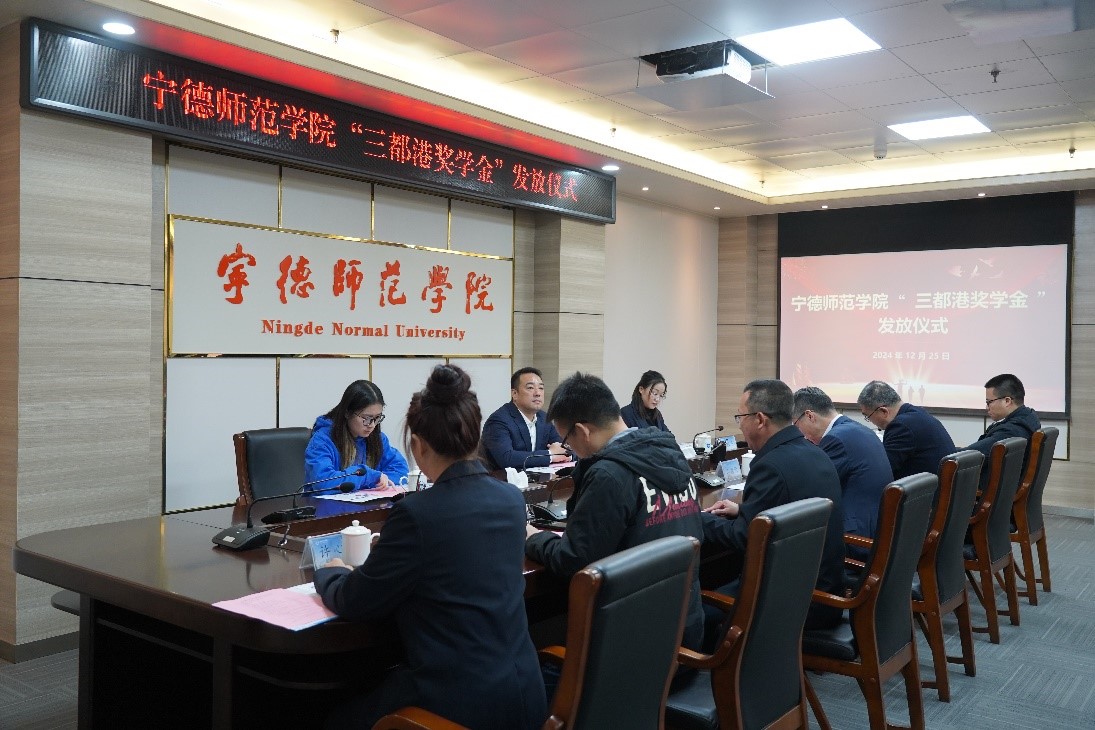 12月25日上午,beats365官方网站2024年“三都港奖学金”发放仪式在行政楼二楼会议室举行。beats365官方网站党委副书记江潮炳,三都港海洋食品有限公司总经理尤信铃,我院和生物科学与工程学院的党委班子、教师代表、辅导员及获奖学生出席发放仪式。仪式由我院党委书记周建辉主持。