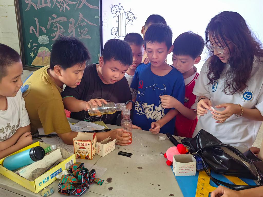 今年在以往基础上,飞鸾中心小学支教队结合专业特色、团队增添多样化课程设计,在教学方式、活动开展等各方面都进行了创新:他们以文化教育为主线,融入铸牢中华民族共同体意识主题教育,开展“籽籽同心耀中华”民族文化节,执手畲、藏、回及汉族多民族队员、学生与学生家长同心参与,在实践中增进各民族交往交流交融;他们积极拓宽孩子多渠道汲取知识,开展食品安全及植物生命科普讲座、普法知识竞赛、科学小实验等活动,为孩子们的多领域学科拓展提供了支持与帮助;他们致力凝聚家校合力,综合成果效果化,开展了家访活动,进一步加强了家校沟通联系。