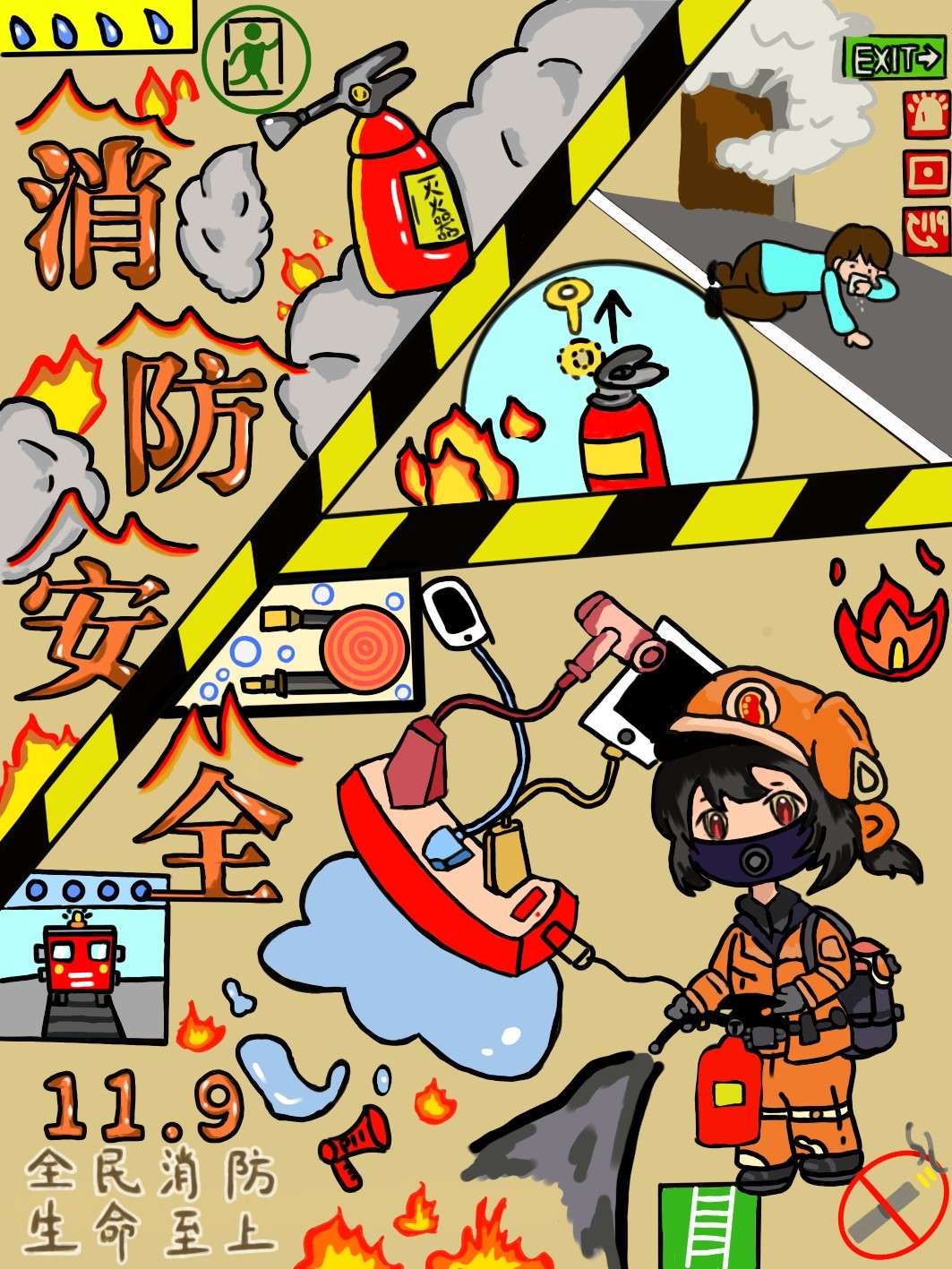 为增强全民消防安全意识,提升社会火灾防控能力,丰富校园生活,我院于2024年11月18日至11月23日举办了以“全民消防,生命至上” 为主题的海报设计比赛。