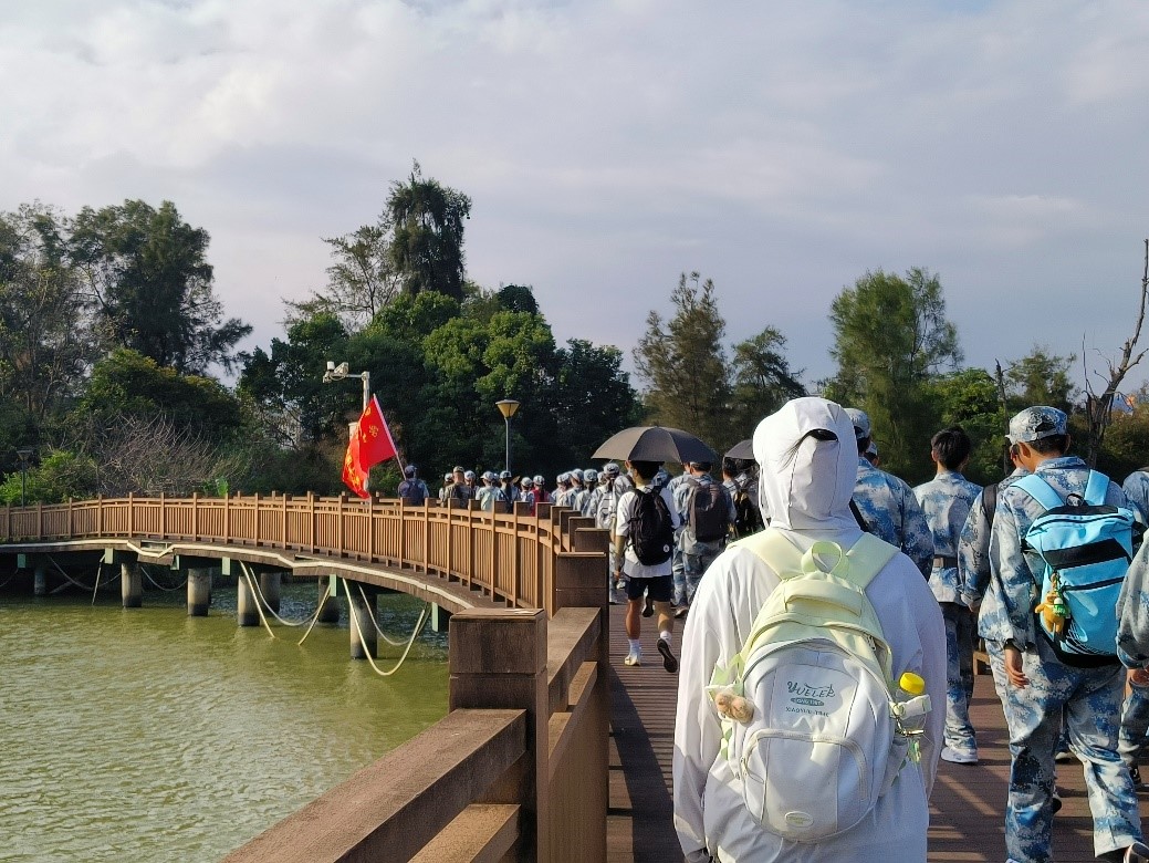 在此期间,学院的老师们深入训练场,关注着每一位同学的精神状态,给予了同学们温暖的关怀与支持。 班助帮助同学们排忧解难,认真地与同学们进行交流。在他们的陪同下同学们积极的服从教官安排,认真有序地完成了军训技能的学习和汇演:如踢正步、军体拳等等。他们也陪同学生们一起进行了军训15公里拉练活动,一路上他们陪伴着同学们,积极引导,帮助同学们调整心态。每当同学想要放弃时,他们总会说出鼓舞人心的话语,激励同学们顺利完成这15公里的挑战。