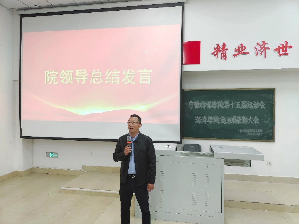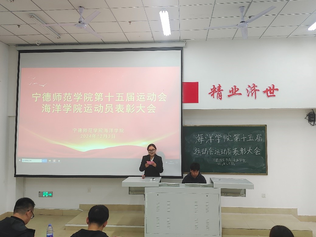 表彰会上,一段精彩的视频回顾了我院学子奋勇拼搏的精神风貌。优秀教练员张炜、优秀运动员陈星源依次上台发言,他们表示运动员们在赛场上挥洒汗水,不仅为个人争得荣誉,更是努力为学院争光添彩。在热烈的掌声中,各位获奖运动员依次走上领奖台,领取奖状并合影留念。这些荣誉不仅是对他们过去努力训练与出色比赛的肯定,更是对未来的激励。大会尾声,院党委书记周建辉上台发言,他强调体育精神对大学生成长的重要性,鼓励运动员们继续保持昂扬斗志,为学院体育事业续写辉煌,并期望更多同学能以他们为榜样,积极参与体育运动,强身健体,锤炼意志。