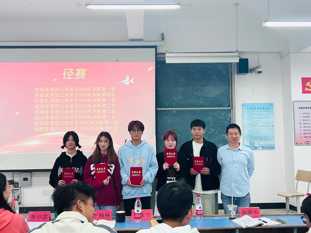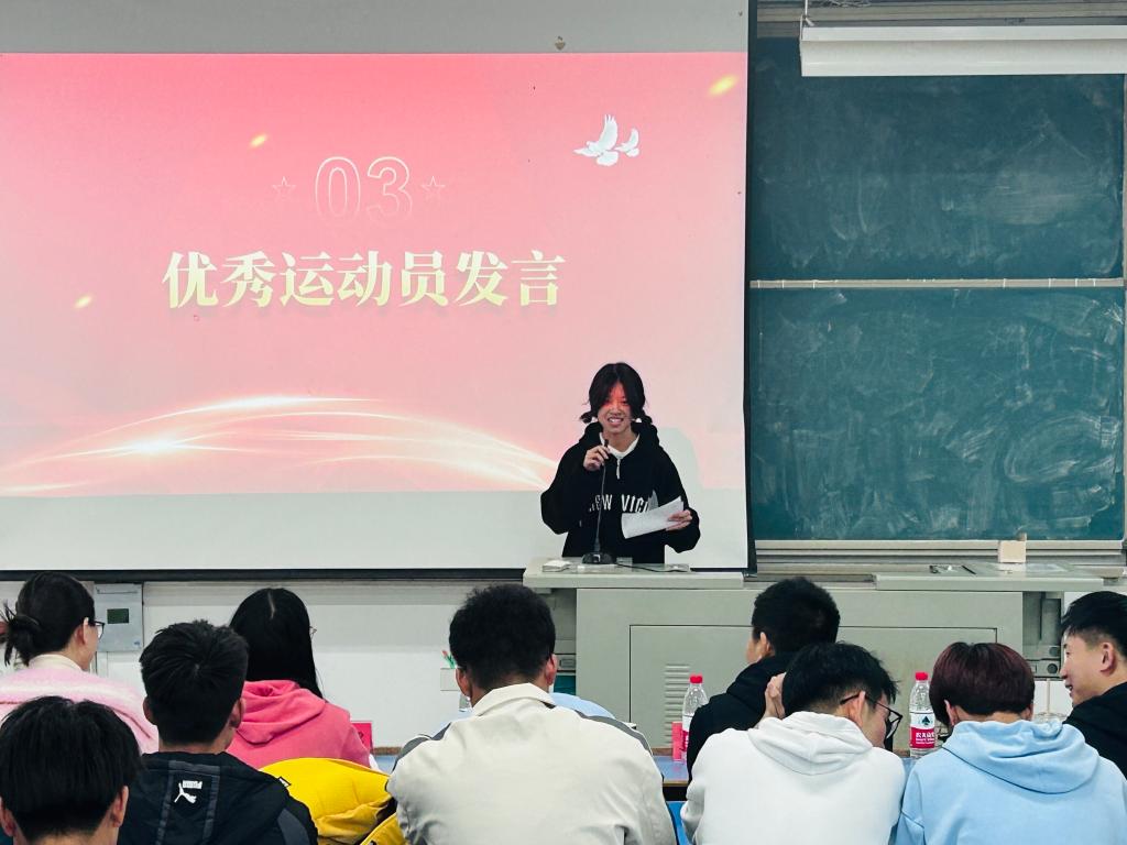 蹲苗强体创新姿,金秋送爽携佳报。为庆祝我院学子在beats365官方网站第十四届校运会取得的优异成绩,激励同学们以昂扬拼搏的姿态投入体育健身行列,我院于2023年11月17日在求实楼C201召开了第十四届校运会运动员表彰大会。院党委副书记王楠楠、全体辅导员、全体运动员、学生会各部门负责人及体育部志愿者出席会议