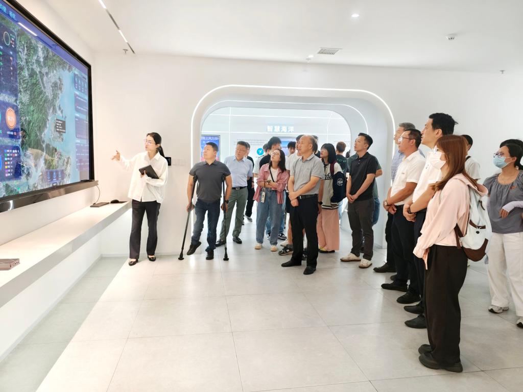 活动伊始,我院师生在讲解员的带领下踏入海创高地二楼展厅,大家系统了解了该平台在水产品精深加工、海洋生物制药、智慧海洋、海工装备等领域的技术成果,全面感受到鼓楼区“科创赋能,引领深蓝”的科技兴海理念。展区陈列的各种先进装备充分彰显了海洋科技的雄厚实力,令在场师生深受震撼。