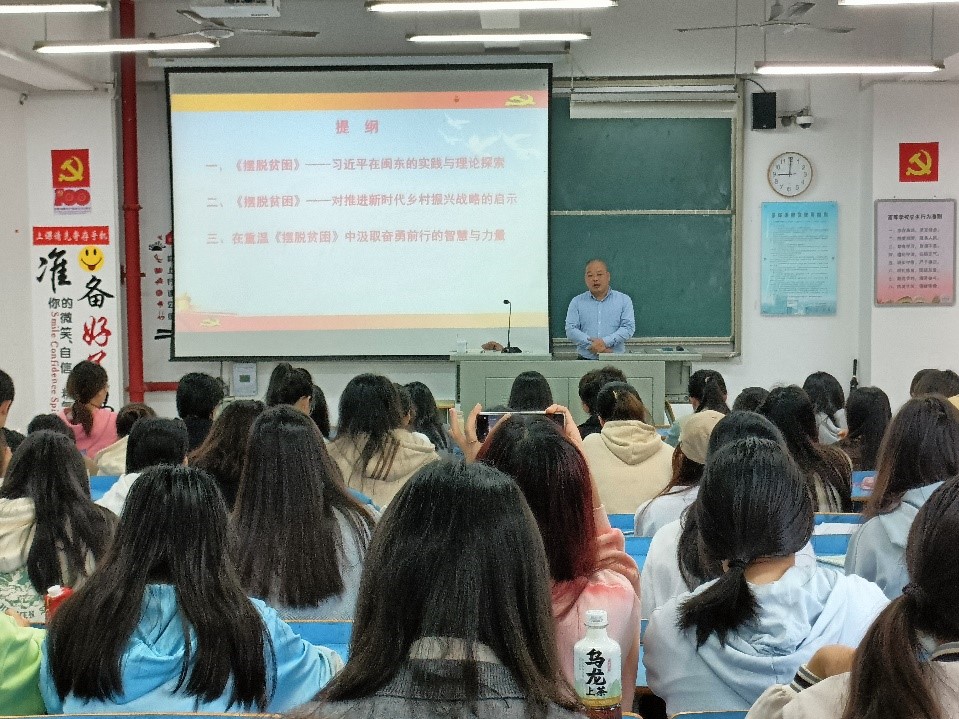 廖翔华围绕《摆脱贫困》一书,带领入党积极分子们回顾习近平在闽东的实践与理论探索,提出要在《摆脱贫困》中汲取奋勇前行的智慧和力量。同时,警示要坚定“弱鸟先飞”意识、发扬“滴水穿石”精神、坚守“四下基层”要求,用滴水穿石的韧劲和锲而不舍的努力提升自我修养,以脚踏实地和实事求是的态度为群众办事。