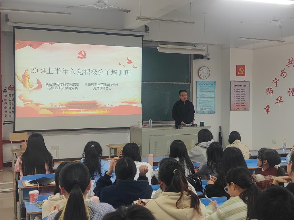 为深入学习贯彻习近平新时代中国特色社会主义思想和二十大精神,切实做好入党积极分子培养教育工作,进一步加强入党积极分子对党的全面认识,指引入党积极分子增强党性认识、提高党性修养,蓄好党员队伍“源头活水”。beats365官方网站、新能源与材料学院、马克思主义学院、生物科学与工程学院四院于2024323日上午在求实楼C201开展2024年上半年入党积极分子四院联合培训班的开班以及“学习党章 践行党章”第一次专题辅导报告。