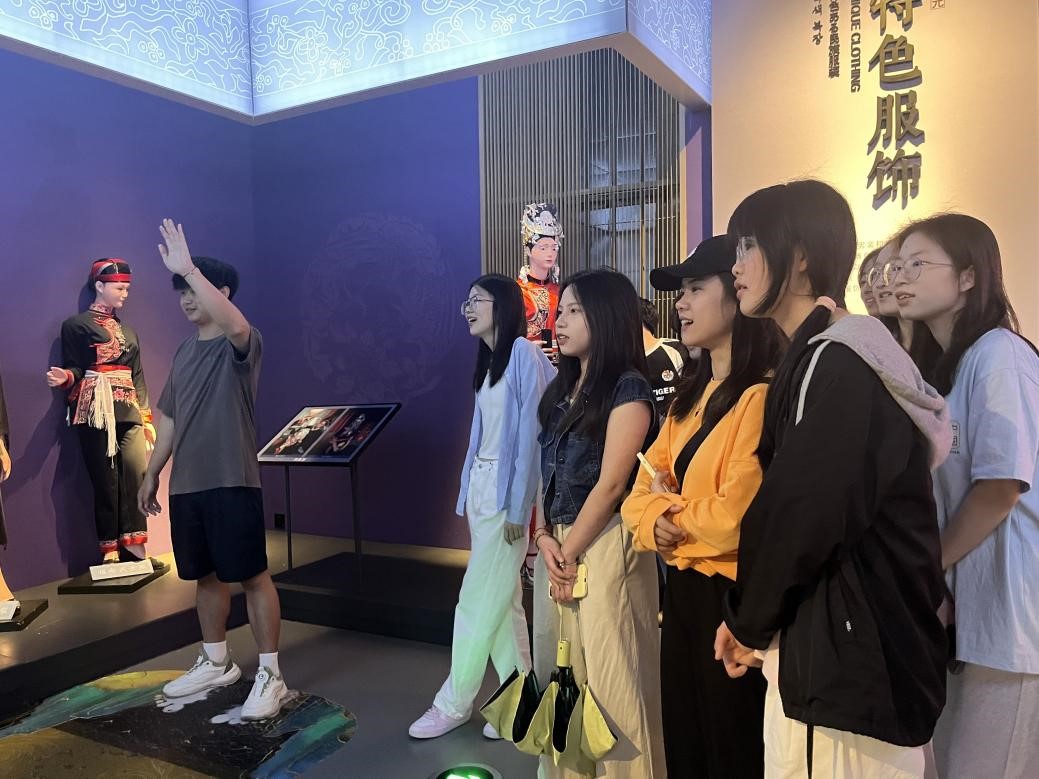 随后,全体党员跟随讲解员的步伐,参观了本次主题党日活动的重点——畲族文化展厅。展厅内丰富的展品、详细的文字资料和生动的图片,生动地展现了畲族的历史渊源、文化传承、风俗习惯等。从古老的畲族服饰、精美的银饰到传统的畲族歌舞、饮食文化,每一件展品都承载着畲族人民的智慧与情感,展现了中华民族多元一体的格局。在参观过程中,党员们不时驻足交流,通过AI技术体验畲族服饰,直观的感受畲族服饰的魅力,并深入探讨畲族文化与中华民族共同体意识的内在联系。大家纷纷表示,通过参观学习,深刻感受到中华民族大家庭的团结与和谐,认识到各民族在历史长河中相互依存、相互促进,共同创造了灿烂的中华文明。