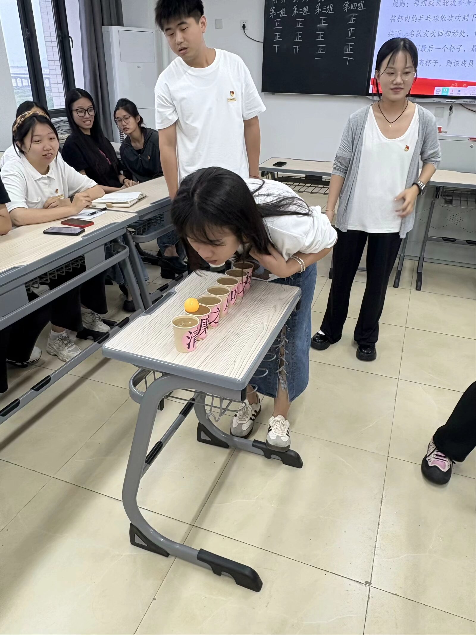 在游戏环节中,支部党员分组协作,进行成语接龙、作风知识大闯关,内容涵盖中央八项规定及其实施细则、廉洁自律准则、党纪处分条例等多方面知识。党员们积极踊跃答题,遇到难题时小组内热烈讨论,共同攻克难关。游戏“清廉之风吹大地”环节更是将此次活动推向了高潮,乒乓球在纸杯间穿梭,每一次吹送就像将廉洁清风吹进每一位党员的心中,时刻提醒大家要保持清正廉洁的政治本色。党员们在参与游戏的过程中,深刻体会到廉洁自律需要持之以恒的努力,任何细微之处都容不得半点疏忽,对廉洁自律和作风建设的相关知识也有了更扎实的掌握。