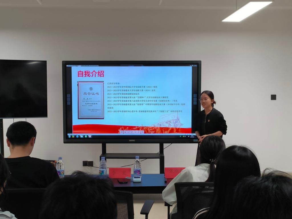 活动现场,4位优秀学生党员代表依次登台,分享宝贵经验。叶巧辉以“牢记嘱托担使命,感恩奋进谱新篇”为主线,回顾自己在大学期间如何在挫折中反思、在机遇中奋进。她的分享让同学们深刻认识到,成长并非一帆风顺,而是在不断的自我审视和奋勇向前中实现的;接着,陈海鑫开启了社会实践的分享之旅,他以飞鸾中心小学支教为切入点,生动展现了支教生活的酸甜苦辣。这些经历不仅丰富了他的人生阅历,更为同学们打开了社会实践的新窗口,让大家明白社会实践是锻炼自我、服务社会的重要途径;随后,李柔带来“互联网+”比赛经验分享,从比赛契机谈起,详细解读比赛选题、路演答辩技巧以及团队协作要点,对有意向参加学科竞赛的同学指明了方向,提供了切实可行的方法和策略,增加了同学们对未来参与比赛的期待和信心;最后,张丽梅从思想、学习、工作、生活四个角度出发,讲述自己从青涩到成熟的蜕变历程,让同学们更加明白大学是一个全面发展的舞台,不仅要注重学业,还要积极参与社团活动、学会处理人际关系。